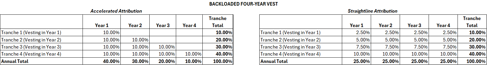Illustration 4 - Impact of Different Types of Vesting Schedules